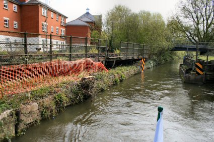Couple of days later and under way. Once through the lock there is this swing railway line that is no longer in use.